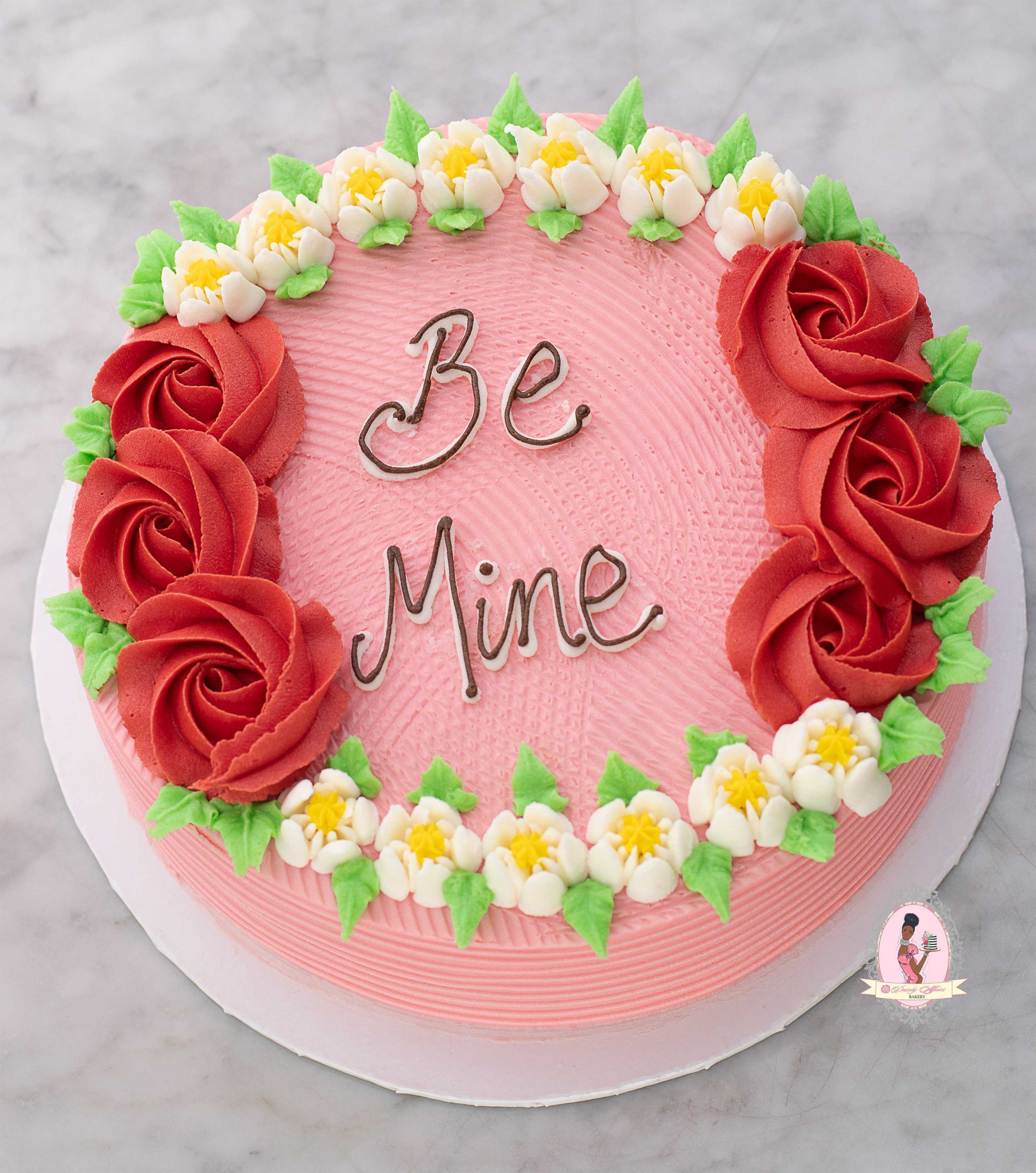 Be mine Buttercream with delivery in Lagos. Available in 3 unique sizes & 3 flavours to choose from: Vanilla, Chocolate or Marble sponge cake. {The image displayed is 8″ size}