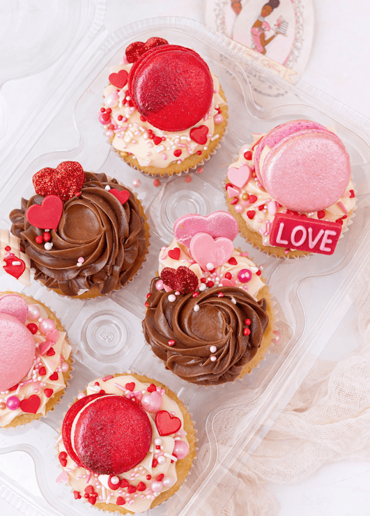 Our Valentine Cupcakes are topped with silky buttercream, salted caramel, decadent chocolate swirls, luxe macarons, and romantic heart details Perfect for Valentine’s Day surprises, sweet celebrations, and luxury dessert gifting. Delivered to you in Lagos.