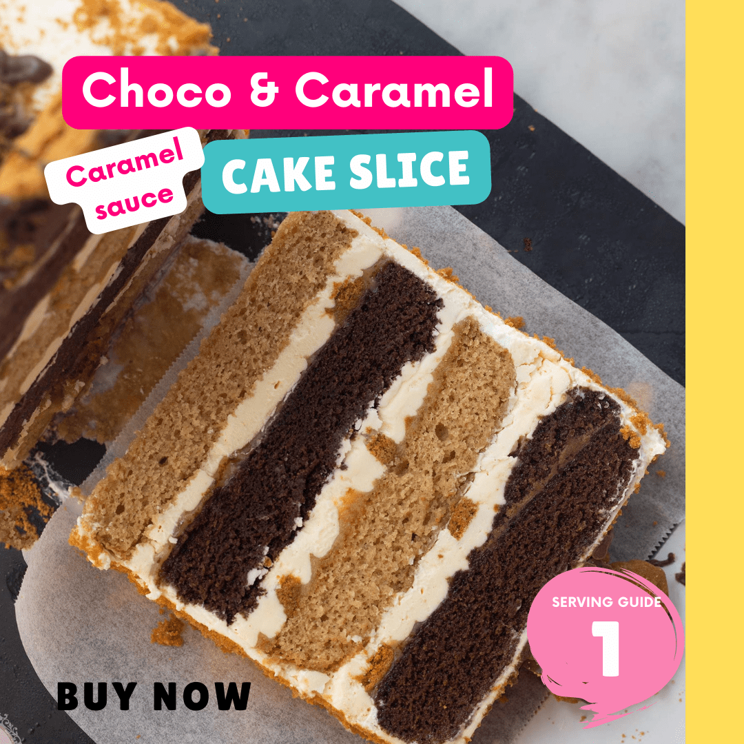 Caramel & Chocolate Slice Dessert Moist layers of Chocolate & Caramel Cake with Creamy filling & Salted Caramel