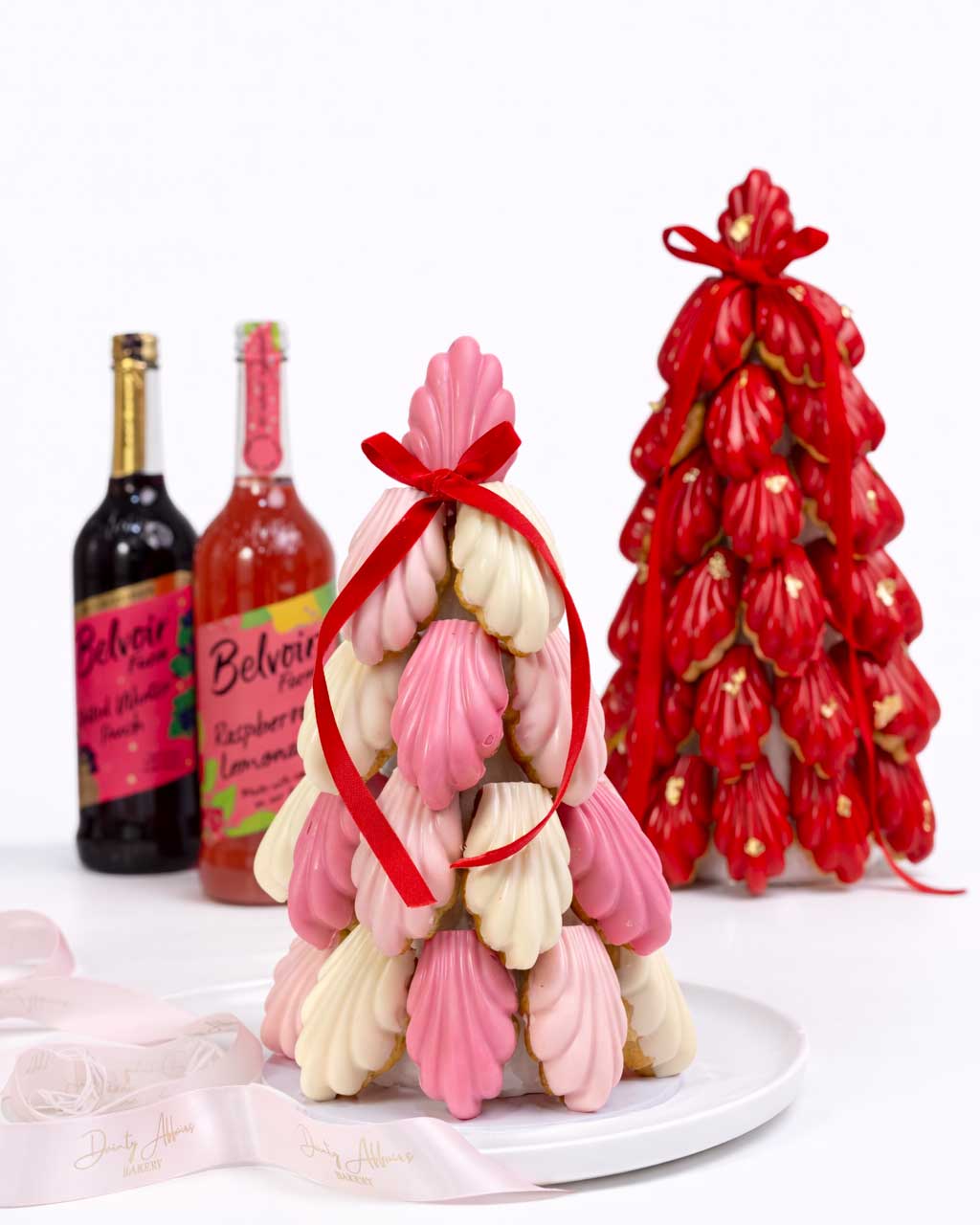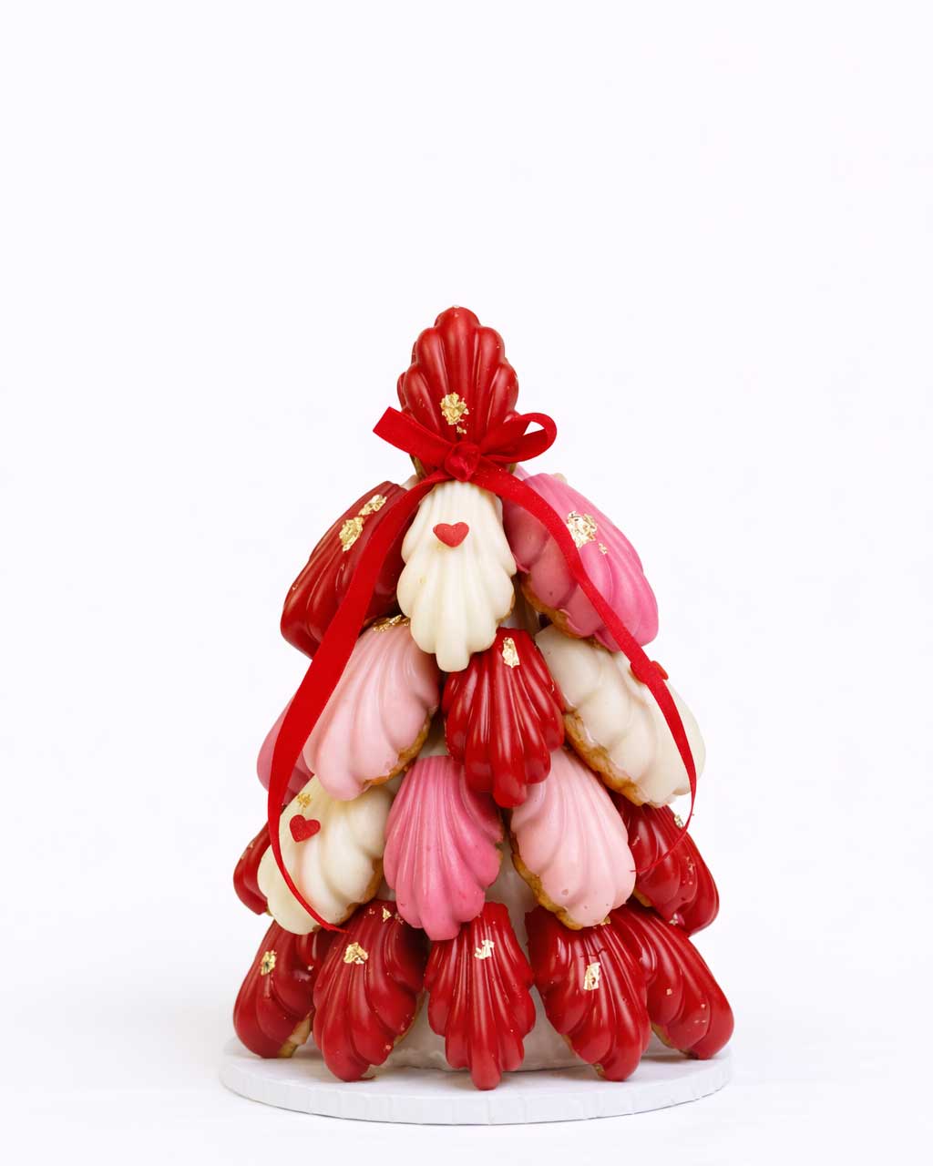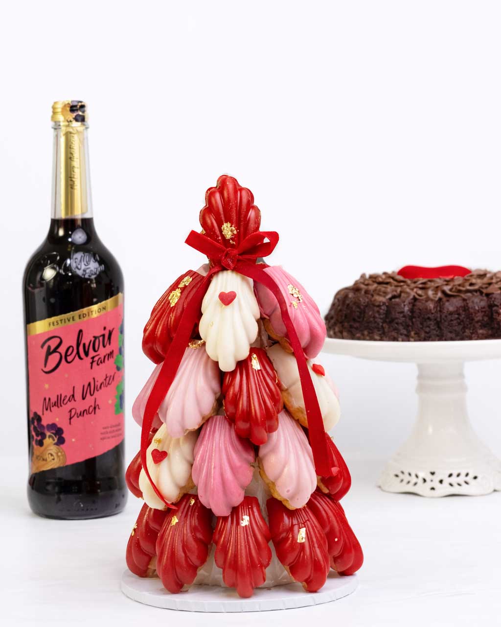 This curated Valentine Chocolate covered Madeleine tower in Red, Blush and Ivory paired with the trending Champagne Trifle in unique flavours, and other delightful treats.Your Madeleine Tower only or paired with other treats.