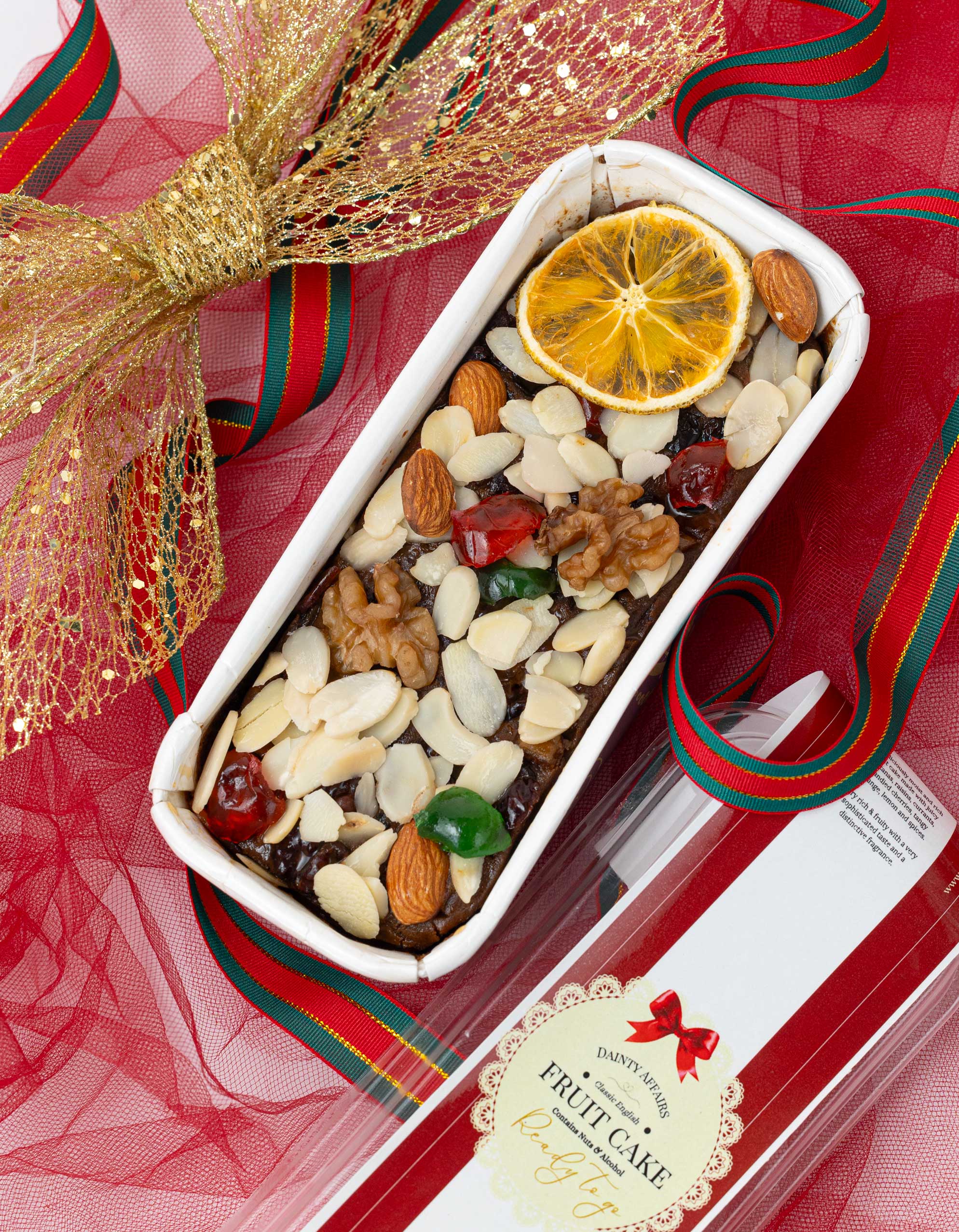 Very rich, moist and fruity with a very sophisticated taste and a distinctive fragrance. Generously garnished with toasted Walnuts, Whole Almond Nuts & Almond Flakes.