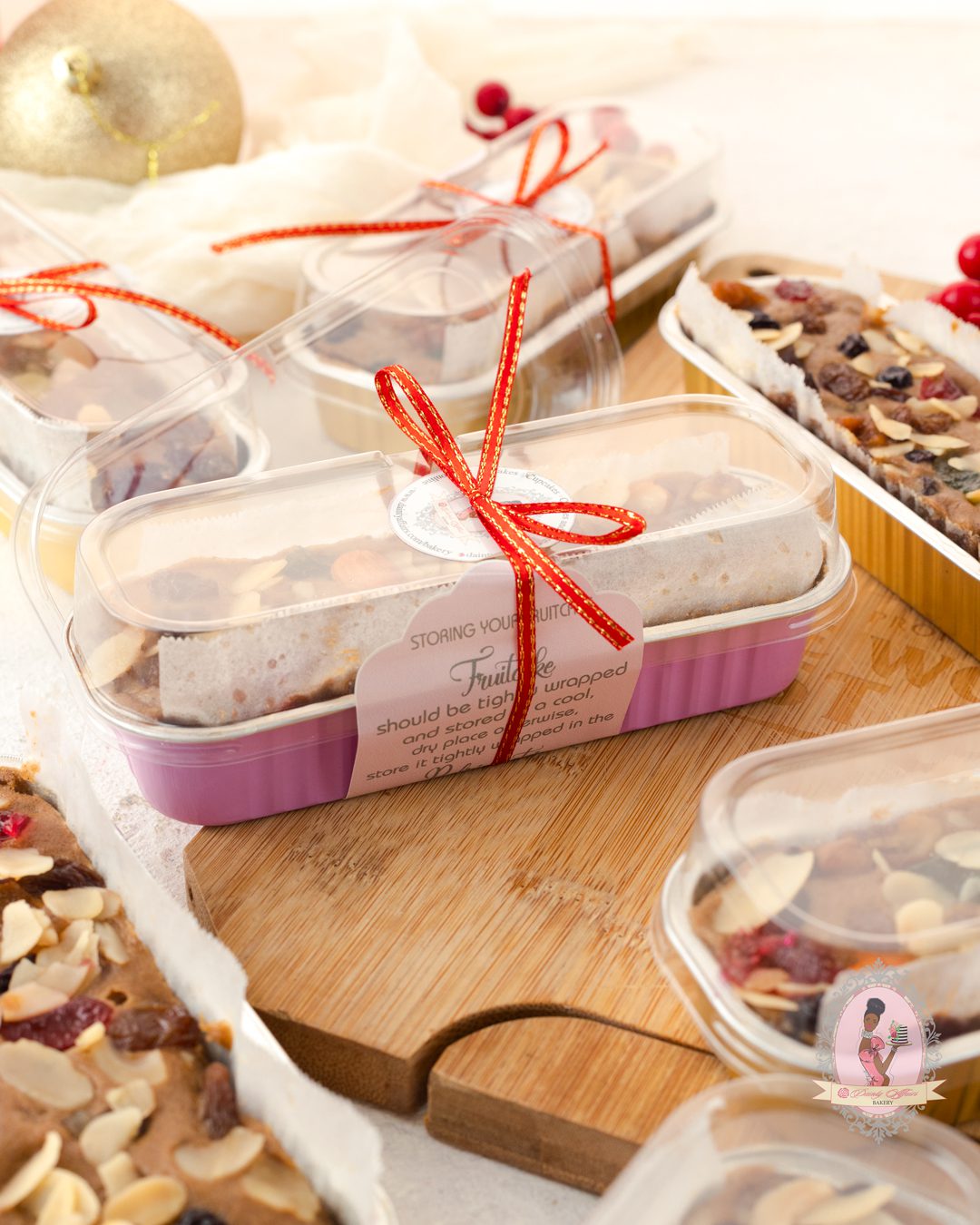 Very rich, moist and fruity with a very sophisticated taste and a distinctive fragrance. Generously garnished with toasted Walnuts, Whole Almond Nuts & shredded Coconut Flakes.